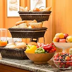 宿泊から600メ-トル離れたカフェのEiscafe Capriレストランで食事を楽しめます.